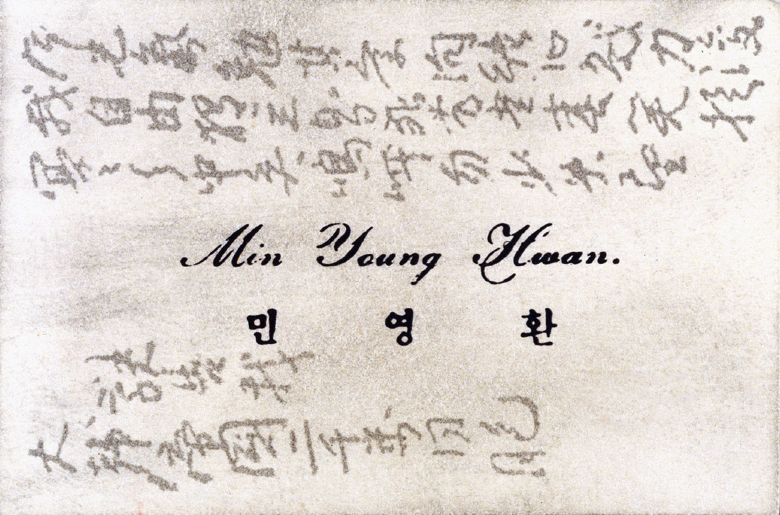 When Imperial Japan forced the Korean Empire to give up its diplomatic sovereignty, Min Young-hwan, then serving as chief of equerry for the Korean Emperor, killed himself in protest on November 30, 1905. This is his suicide note, written on his business card. Under the title of “Bidding Farewell to My 20 Million Compatriots of the Korean Empire,” he implores them to “join forces with each other to restore independence and freedom.”
