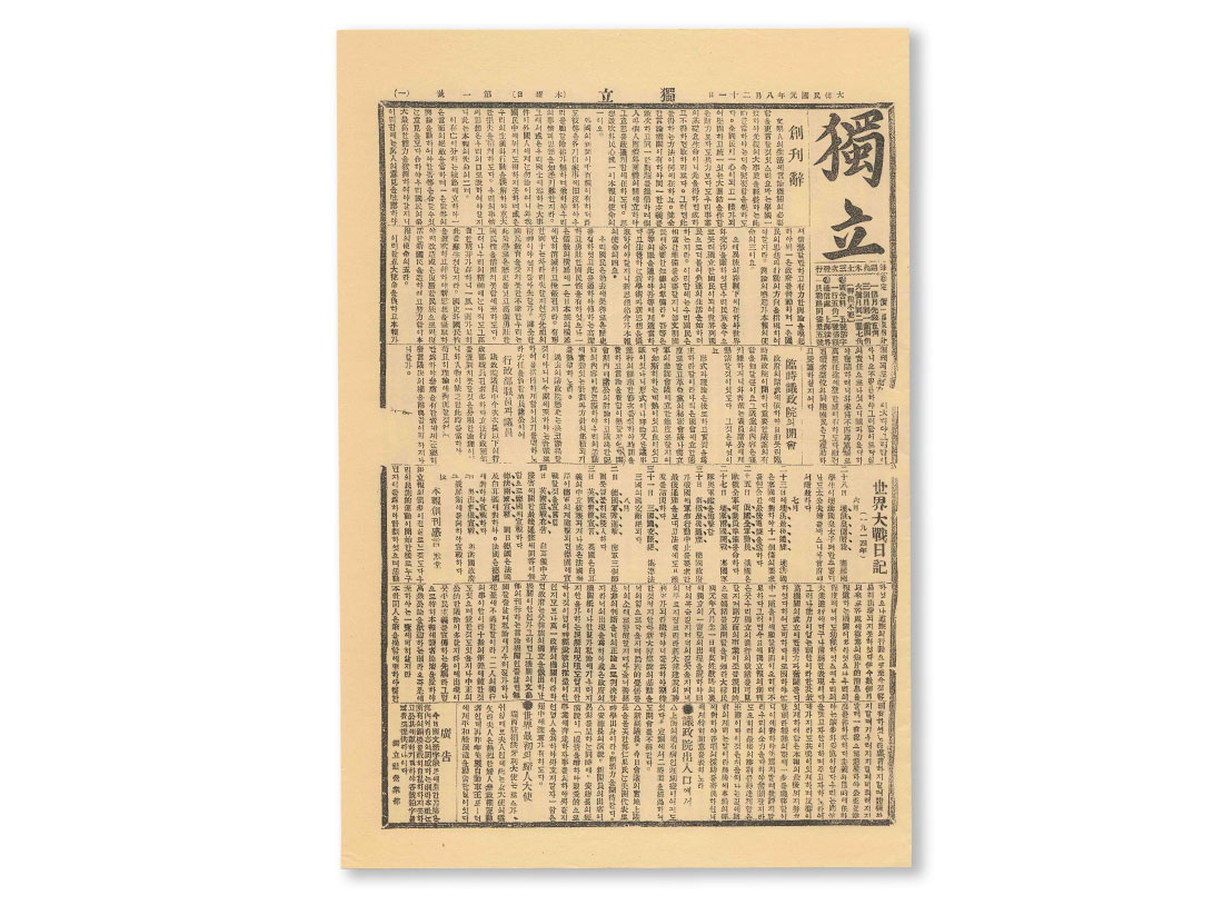Tongnip sinmun(The Independent) was an organ of the Provisional Government of the Republic of Korea and published in Shanghai, China from August 1919 to November 1926. Printed in both the Hangeul alphabet and Chinese characters, it vividly covered the overall situation of the independence movement and the Korean struggle, including the activities of the provisional government as well as the trends of the independence movement at home and abroad. It was reissued in Chongqing, China in 1943 and published until 1945.